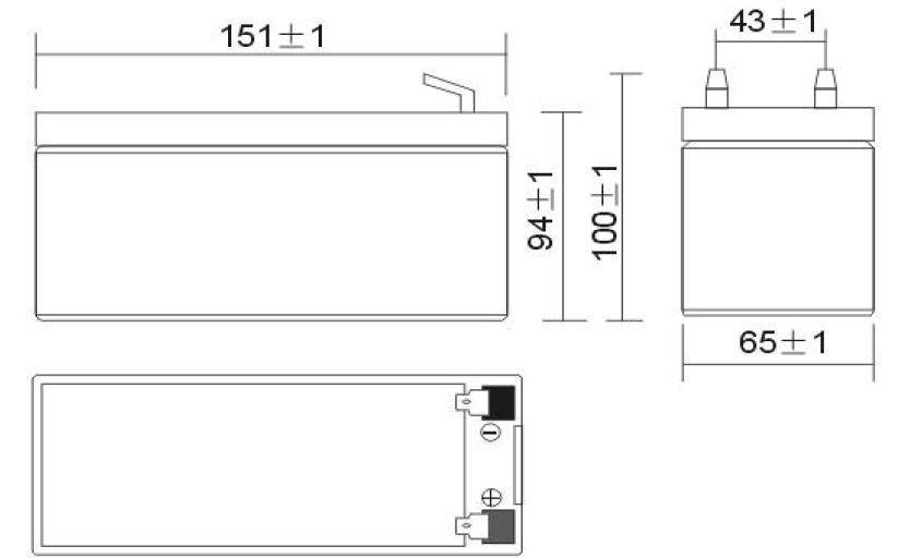 Caractéristiques : - STD 8 (ou 65) - 12 Volts - 7.7 Ah - 2.400 Kg - L = 151 x l = 65 x H = 94 mm |