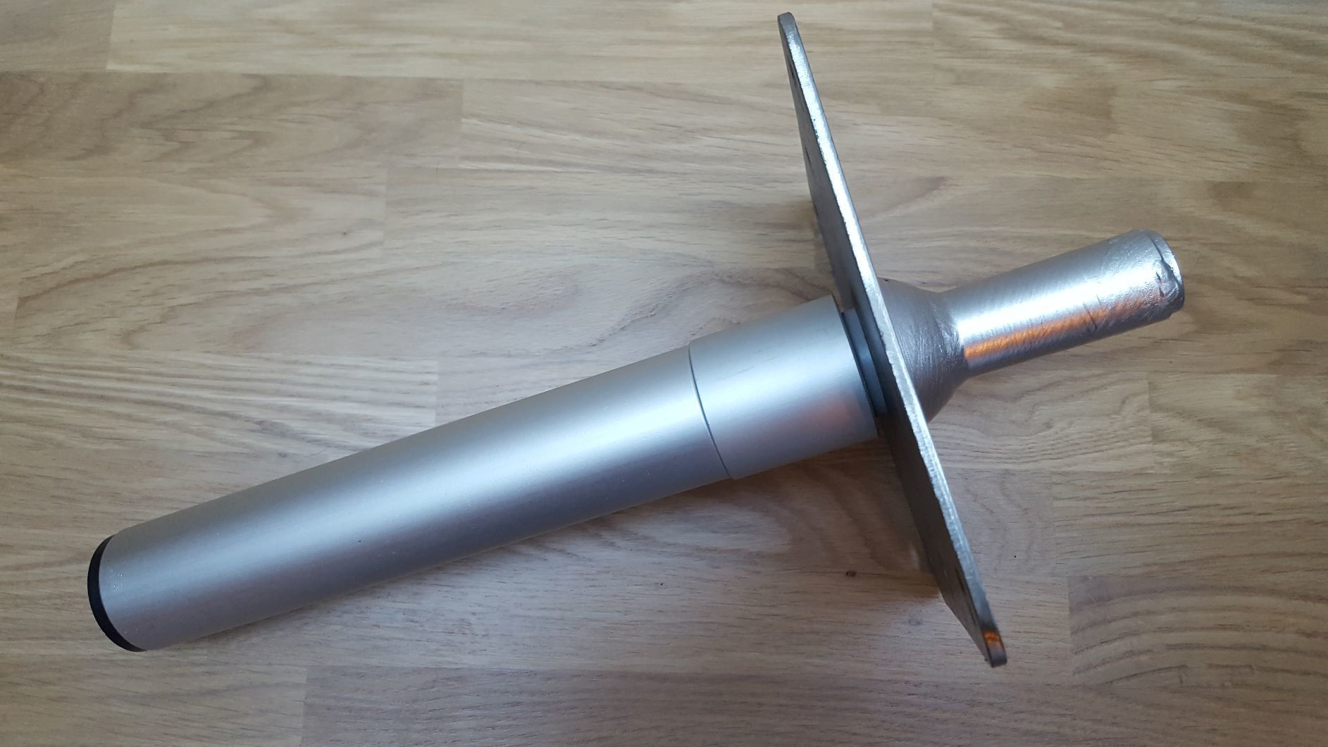 Remarque du technicien : Lors que vous installez ce pied dans l'embase de plancher inox prévoir un dégagement (coffre, plancher, banc, etc...) sous le support d'environ 9 cm ainsi qu'un trou à la scie cloche de 6,5 cm environ. |
