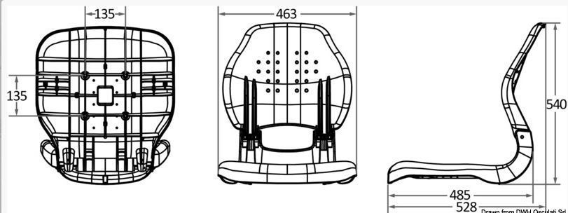 Dossier rabattable avec arrêt. Mousse intérieure haute densité. Revêtement résistant aux UV. Trous de fixation inférieurs avec entraxe standard.