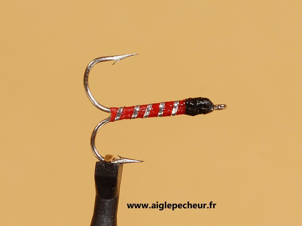 CommandeDescriptifVous avez certainement déjà entendu parler du Corégone (ou Féra, Lavaret, Palé…). Ils se pêchent chez nous, et depuis de nombreuses années déjà, à l’aide d’un plombier muni de nymphes ou d'imitation de larves (chironomes).Il s’agit d’imitations, montées en potence les unes au dessus des autres et dandinées plus ou moins lentement. Savez-vous que ces plombiers sont d’une redoutable efficacité sur d’autres poissons, comme les Perches, les Gardons, les Ombles Chevaliers, les Brèmes et autres curieux parfois surprenants? Savez-vous également que ces plombiers peuvent s’utiliser avec succès en «lancer-ramener» ? Il s'agit de techniques locales de l'Est de la France. Essayez vous aussi dans votre lac, vous serez surpris ! Dans notre région et depuis plus de 10 ans, les pêcheurs Jurassiens ont un "secret" ! Les nymphes Corégones montées sur hameçons doubles ont révolutionnées cette Pêche ! Plus de touches, plus de résultats en période difficile ! Soyez curieux et essayer les ! Nos nymphes ou imitations de larves de chironomes se déclinent en plusieurs coloris et 2 tailles d'hameçons : N° 14, la plus petite et N° 12, la plus grande. Les "doubles" sont de loin les plus vendus et sont extrêmements efficaces. Il s'agit d'une exclusivité Aigle Pêcheur; l'hameçon double nécessaire étant fabriqué par nos soins (nous les vendons également non monté). Vous pouvez également retrouver nos nymphes prêtes à utiliser, montées sur nos lignes "prêtent à pêcher", dans la rubrique Corégone & Lavaret.